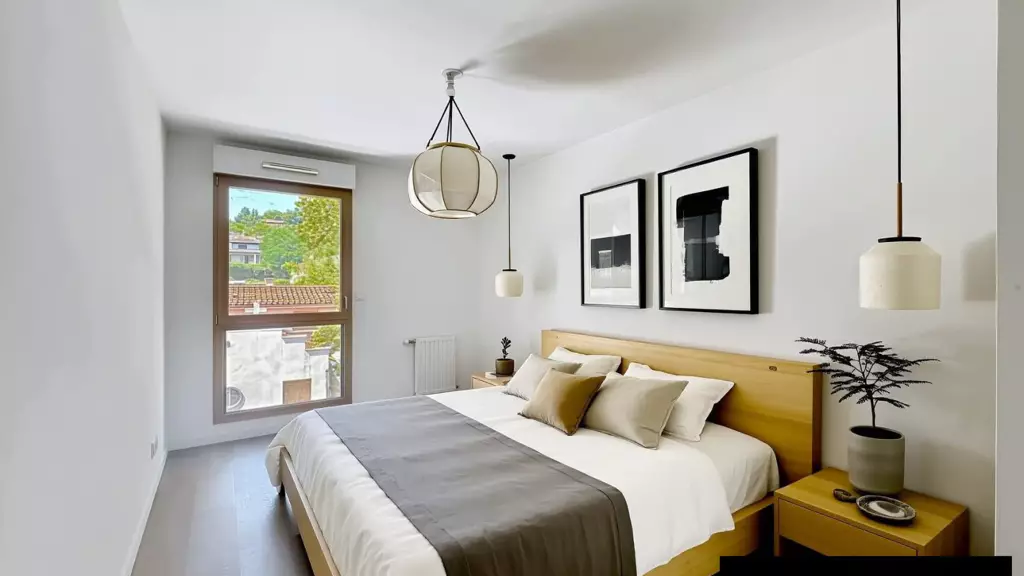 Il se compose d'un hall donnant sur la pièce de vie de 35m2 ouverte sur le balcon de 10m2 exposé Est et d'un espace nuit comportant deux chambres avec placard, une salle d'eau et un WC indépendant.